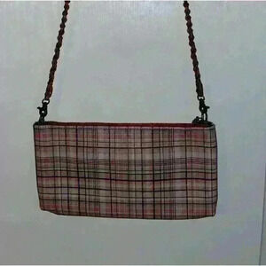 This bag is adorable with a plaid design! Has no flaws in excellent condition! Can be worn three ways has a detachable strap with chain detail! Zipper inside pocket!