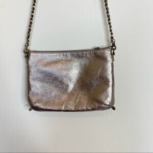 Elliot Lucca silver metallic pewter leather zip crossbody bag