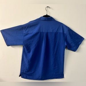 Short Sleeve Button Down Blue Polyester Size Medium Color Blue