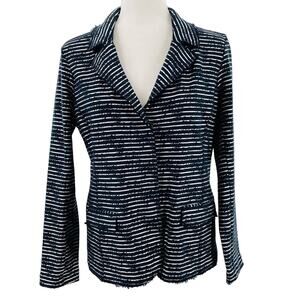 Elliott Lauren Black & Silver Striped Knit Button Front Blazer Jacket Women Sz S