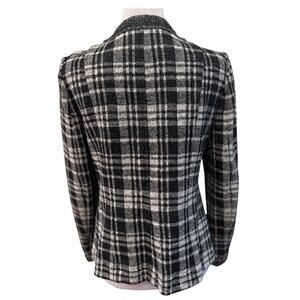 Elliott Lauren Black & White Plaid Virgin Wool Cotton Blend Open front Blazer 6