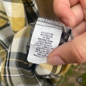 Elliott Lauren Button Down Plaid Black and Yellow with metallic detailing