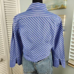 Elliott Lauren Button-Up Shirt Blue White Stripe Tie Front 100% Cotton Size 6 SM Crafted from 100% cotton. Perfect for preppy styling, coastal layering, or casual office wear