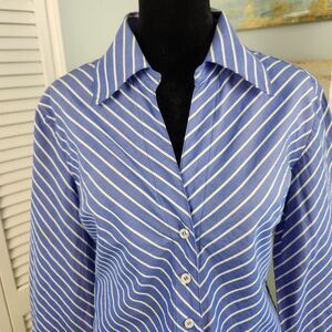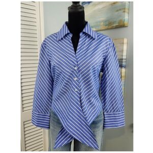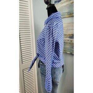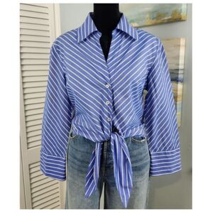Elliott Lauren Button-Up Shirt Blue White Stripe Tie Front 100% Cotton Size 6 SM