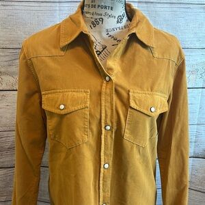 Elliott Lauren Corduroy Shirt Snap Front Closure Relaxed Fit Size XS Gold