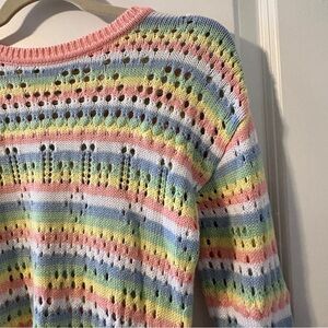 Elliott Lauren Multicolor Open Knit Crewneck Sweater Women’s Size XS Pastel EUC