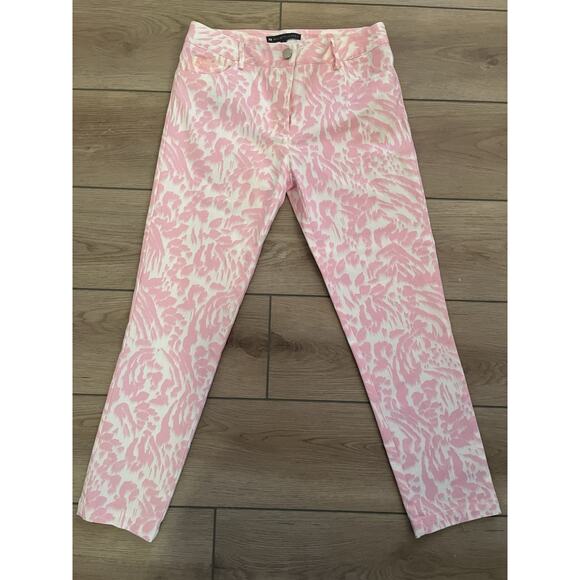 Elliott Lauren Pink and White Leopard Print Cropped Stretch Jeans Size 2