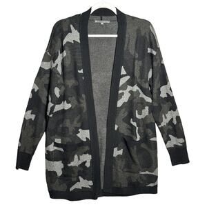 Elliott Lauren Womens Sz Medium Long Camo Open Front Cardigan viscose soft cozy