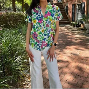 Elliott Lauren colorful floral linen blend pullover office career top M