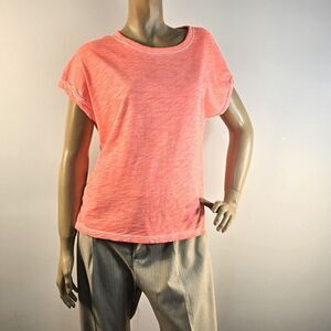 Elliott Lauren All Cotton Tee Size M Tangerine Orange Short Sleeve Crew Neck
