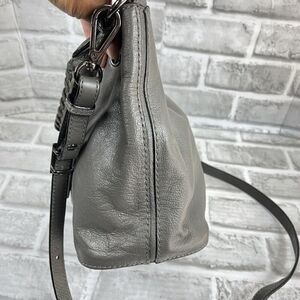 Elliott Luca Women's Gray Leather Drawstring Bucket Crossbody Bag Purse