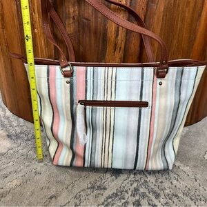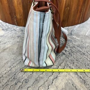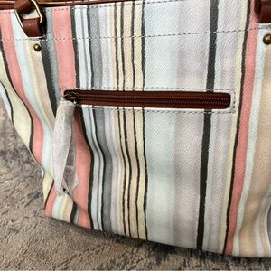 Elliott Lucca Aria Watercolor Stripes Shoulder Tote Handbag Vegan Leather EUC