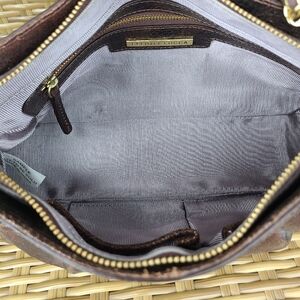 Elliott Lucca Bag Shoulder Handbag Leather Distressed Maroon Gold Hardware Braid