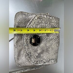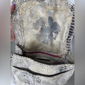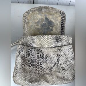 Elliott Lucca Gray Leather Rojo Multi Snakeskin Flap Crossbody Purse.