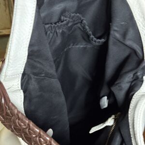 Elliott Lucca Large Cream Leather Handbag Hand Painted Peacock Feather S…