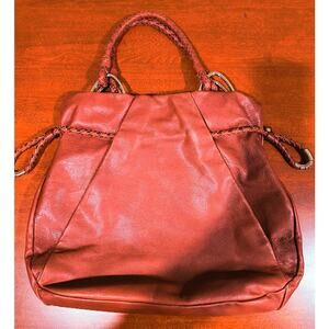 Elliott Lucca Large Soft Leather Bag with Braided Handles, Brown/Gold