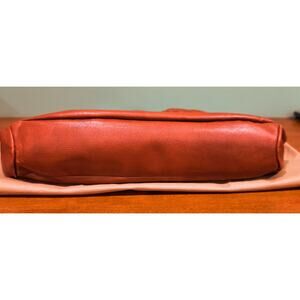 This is a large Elliott Lucca pebbled leather bag. It has two zipped pockets on the exterior and two slip pockets and one zippered pocket on the interior. It comes with a dust bag. Hardware is goldtone and the strap holders are inscribed with Elliott Lucca. 17.5" wide at bottom, 15" wide at the top, 15" high and 3.5" deep. Strap drop is 7.5". Great bag for traveling because it will hold a lot!