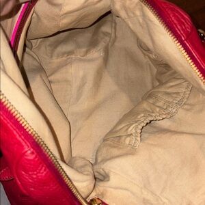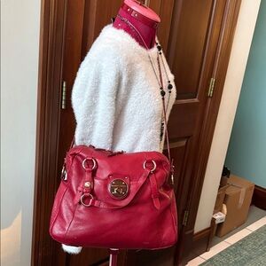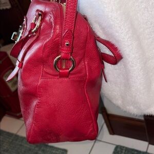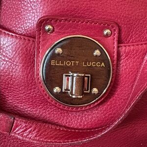 Elliott Lucca Large leather bag Satchel Shoulder bag holiday Red goldtone EUC