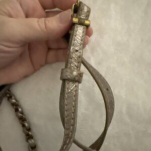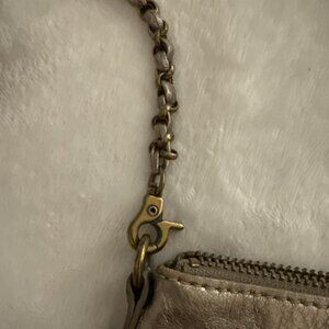Elliott Lucca Mari Metallic Bronze Leather Flat Zippers Crossbody Bag