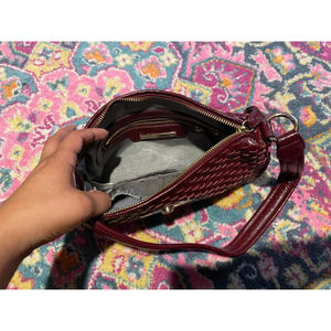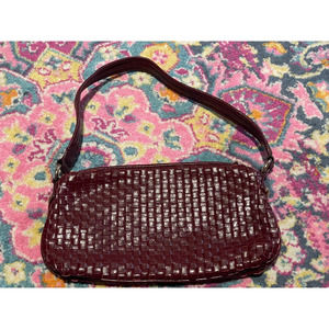 Elliott Lucca Maroon Woven Cow Leather Shoulder Bag Purse Handbag