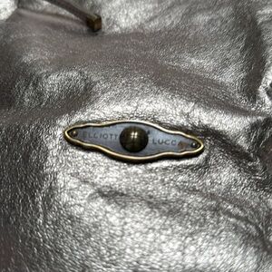 Elevate your style with this chic Elliott Lucca metallic gold leather bag. Perfect for any occasion, this bag combines elegance with functionality. Gold hardware, cinch tassels, two zippered pockets on exterior, magnetic closure in main pocket with slip pockets & zippered pocket on interior. Great condition.