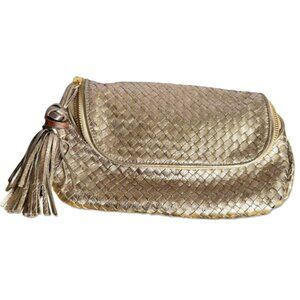 Elliott Lucca, Metallic Leather Bag, Woven Shoulder Bag, Gold Tassel Purse, Designer Handbag, Evening Bag, Metallic Bronze Clutch, Crossbody Convertible, Braided Leather, Chic Everyday Purse, Boho Luxe, Holiday Party Bag