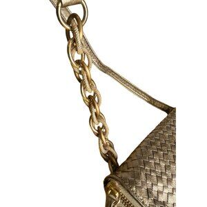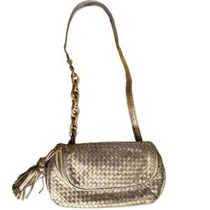 Elliott Lucca Metallic Woven Leather Shoulder Bag with Tassel – Gold Bronze