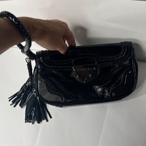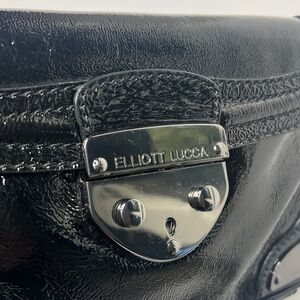 This is a beautiful Elliott Lucca Patent Leather Blackened Metal Hardware Wristlet Clutch Bag. Excellent condition, no signs of wear. No odors. No stains. 9.75” x 5.75” x 2” with 5” wristlet and 7” double tassels. Lined interior with multiple compartments.