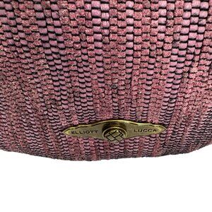 Keywords: Elliott Lucca, pink purse, woven leather, shoulder bag, women's accessory, handbag, designer bag, pink handbag, leather purse, fashion bag, adjustable strap, interior zip, stylish bag