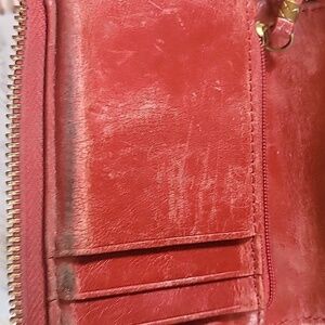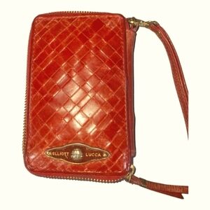 Elliott Lucca Red Leather Woven zip around closure Wristlet Wallet Organizer