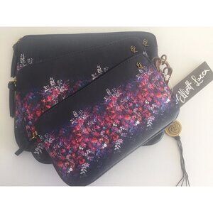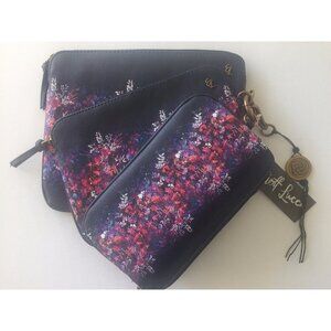 Elliott Lucca Set of 3 Artisan Floral Bouquet Indigo Blue Cosmetic Bags NEW