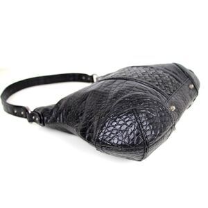 Elliott Lucca WOVEN BLACK GENUINE LEATHER CROCO PRINT SHOULDER BAG HANDBAG HOBO