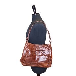 Elliott Lucca woven brown leather shoulder bag hobo purse