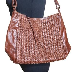 Elliott Lucca Woven Leather Shoulder Bag Hobo Purse Satchel Brown