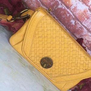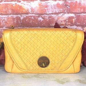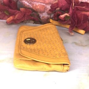 Elliott Lucca Yellow Woven Leather Clutch Wrislet