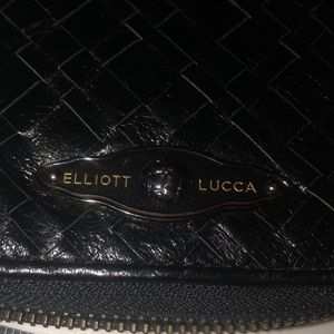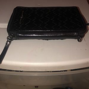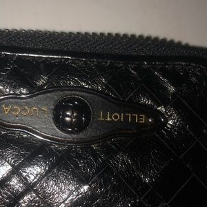 Elliott Lucca black wallet mobile & card case has rings to attach crossbody or wrist strap never used