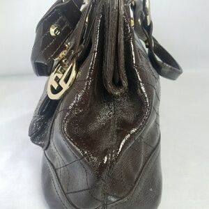 Elliott Lucca brown quilted patent leather satchel
