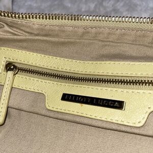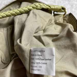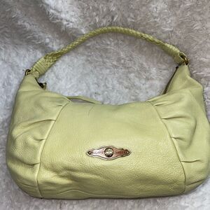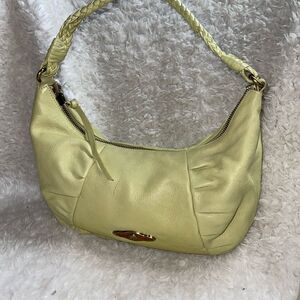 Elliott Lucca Leather mint green shoulder bag with antique tone hardwares braided shoulder strap top zipper the inside lining has a side zipper two side pockets..pre owned in good used condition clean a small mark not noticeable in the front see all pictures any questions please message.M7