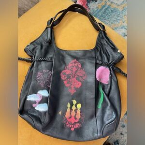 This very unique Elliott Lucca leather handbag has been custom painted.