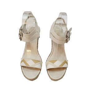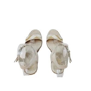 Elliott Lucca Guilia Leather Espadrille Wedge in Linen Multi Size 9