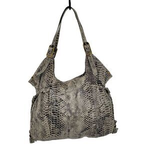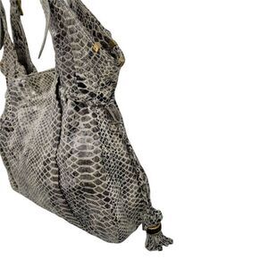 Elliott Lucca Leather Gray Cream Snakeskin Large Hobo Shoulder Bag Tassel Detail