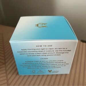 Apply morning and night to clean, dry skin for a balanced, nourishing dose of moisture. Use the included spoon to scoop a pearl-sized amount. Massage into face and neck using upward strokes.