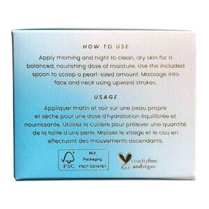 • Apply morning and night to clean, dry skin for a balanced, nourishing dose of moisture. Use the included spoon to scoop a pearl-sized amount. Massage into face and neck using upward strokes.