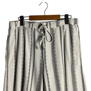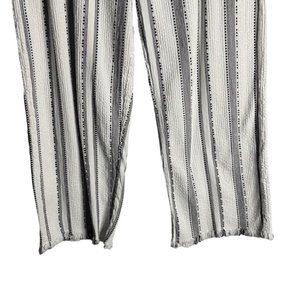 Ellis & Dewey Women's Black and White Striped Frayed Hem Pants