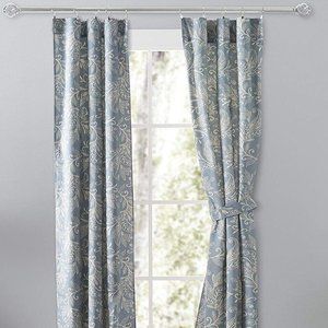 Ellis- Lexington Leaf Curtain Panel Set w Ties Rod Pocket Floral Blue 56X84L NEW