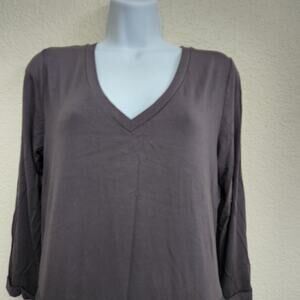 Ellison Charcoal Gray V Neck A Line Dress Large Lightweight Side Zip Stretch