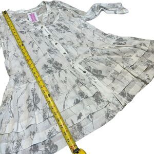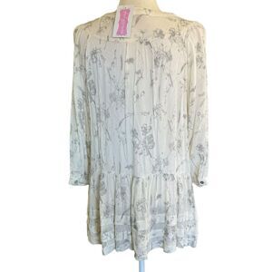 Ellison Dress Gray White Garden Print M Tunic Feminine Romantic Sheer Flouncy