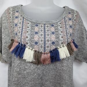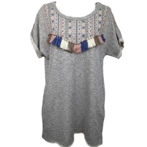 Ellison Embroidered Tasseled Terry Cloth Mini Dress Sz M