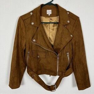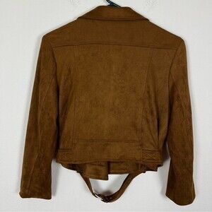 Ellison Faux Leather Brown Suede Moto Jacket- Waist Belt- Size Small