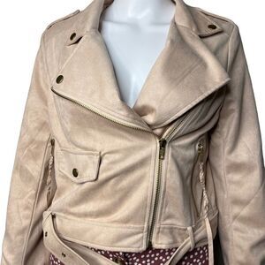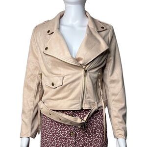 Ellison Faux Suede Moto Jacket Blush Pink Size Large
